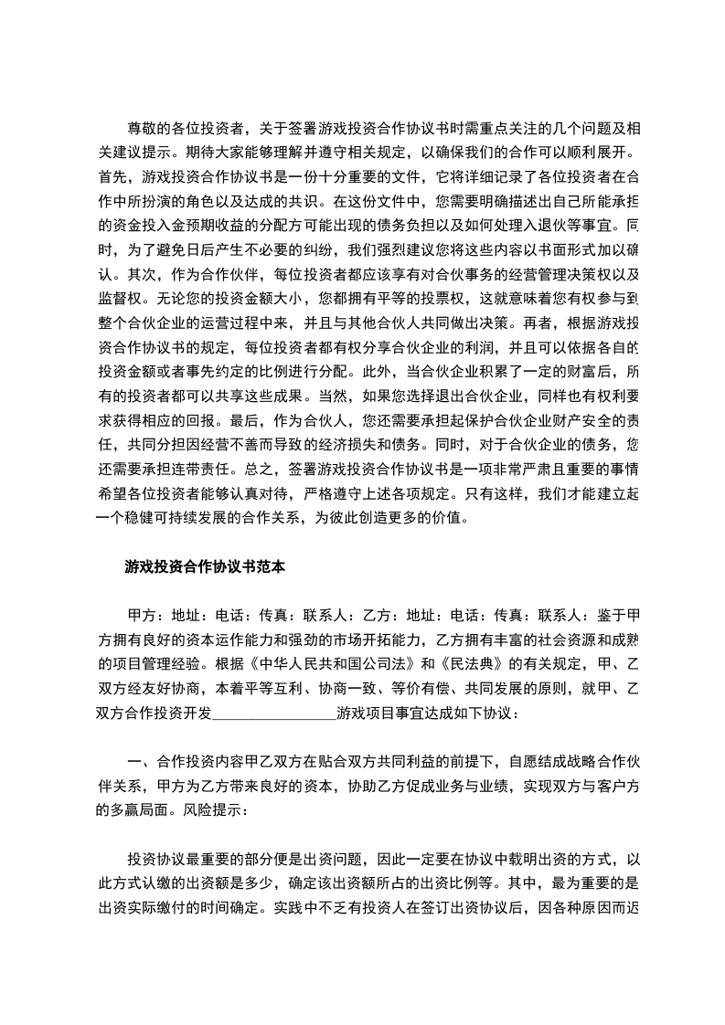 4. 双方应共同配合,应对游戏项目可能面临的风险和挑战。