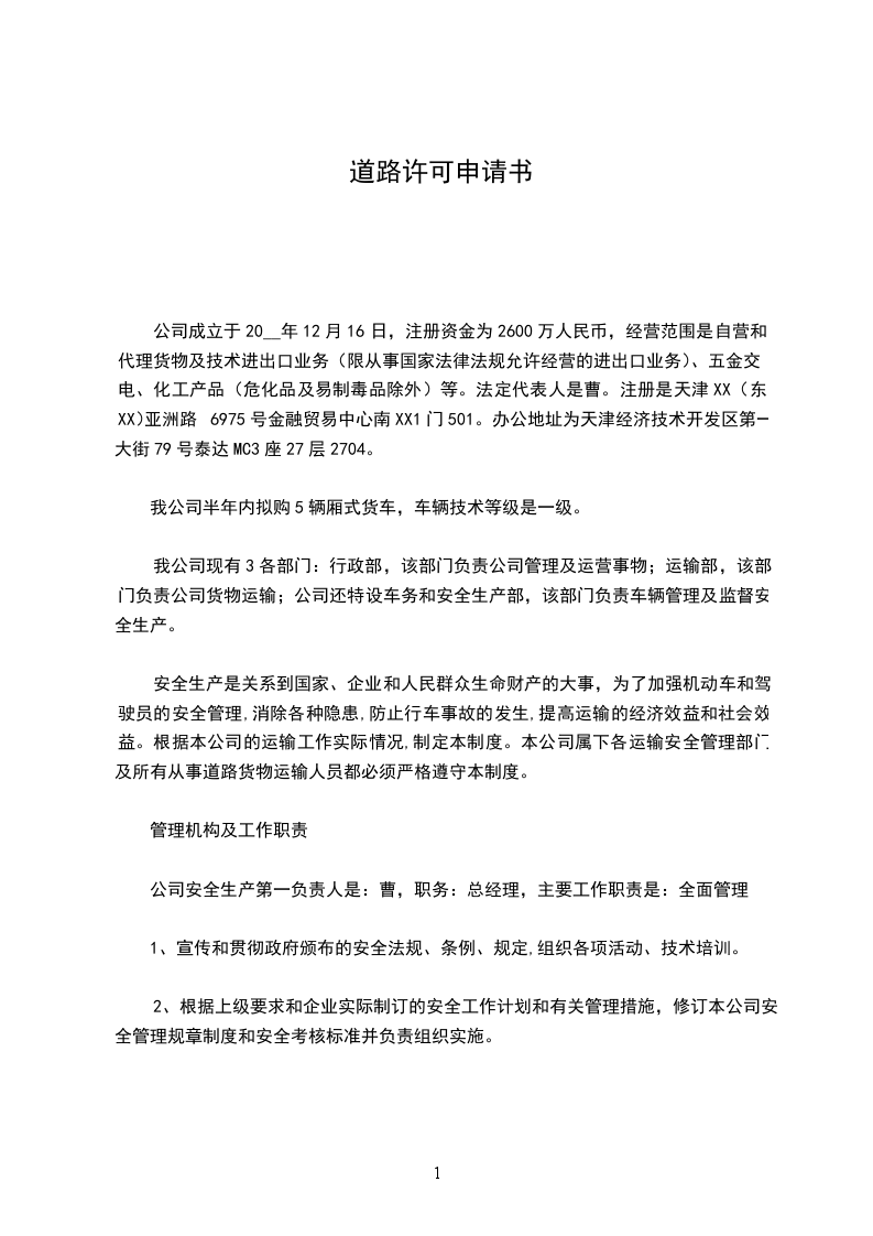 1. 办理道路运输许可证的费用为______元(大写______元整)。
