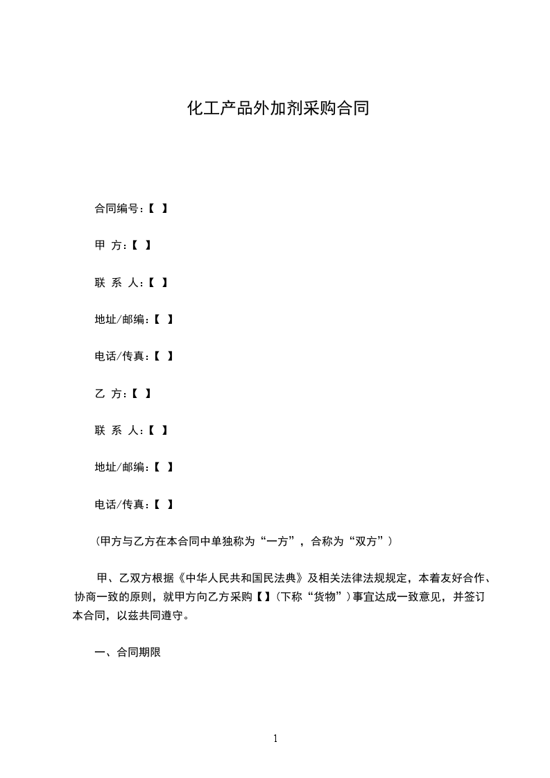 化工产品采购合同