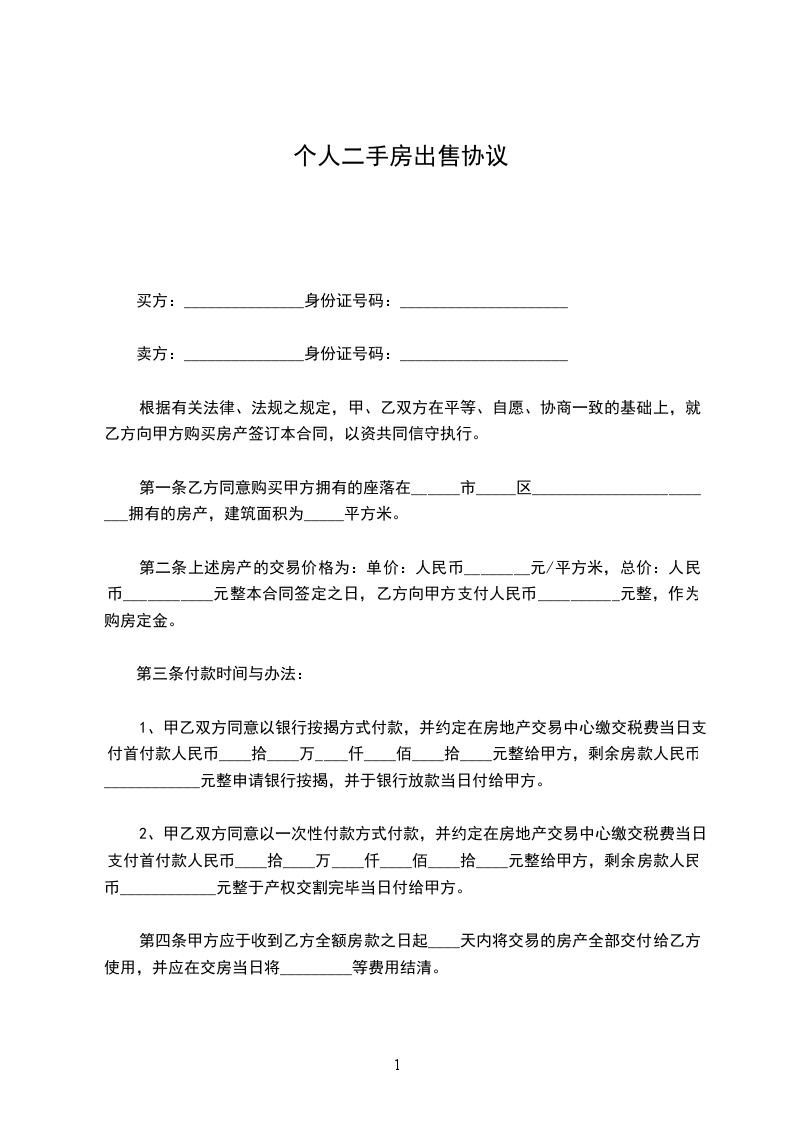 1、甲乙双方同意以一次性付款方式付款。甲、乙方定于____日内向有关部门申请办理相关附属设施和相关权益的更名手续。