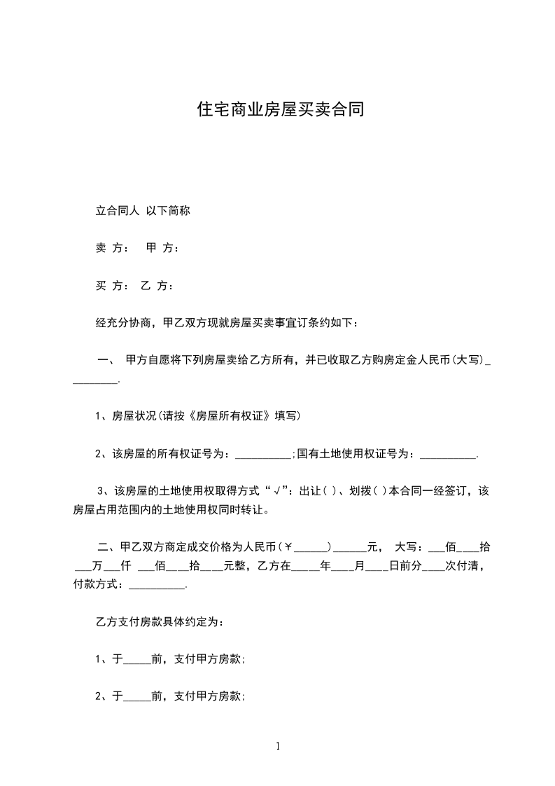 1、于_____前,支付甲方房款;
