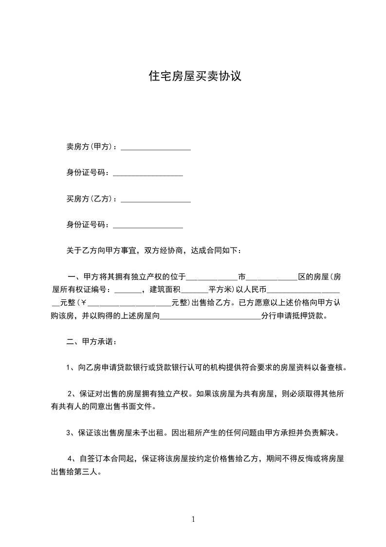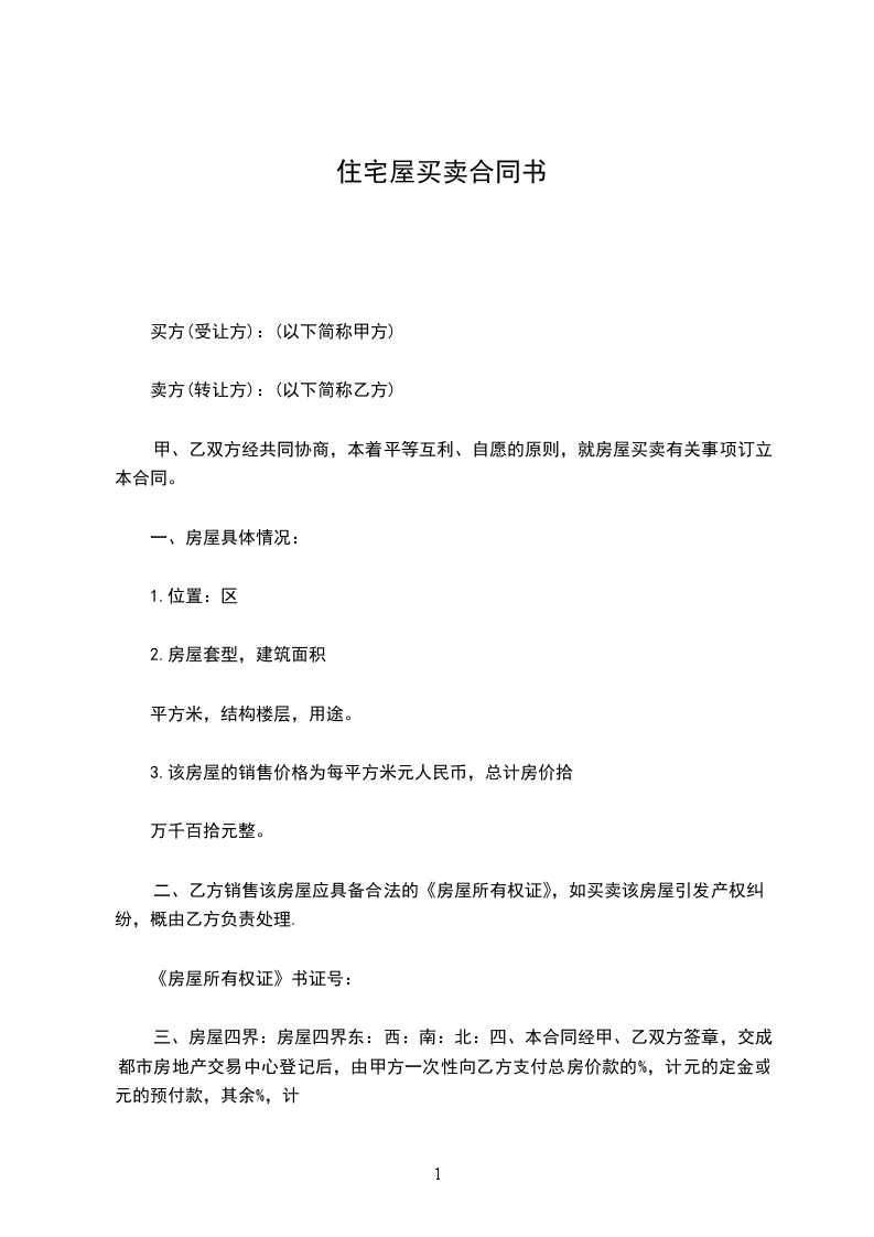 一、 甲方自愿将下列房屋卖给乙方所有,并已收取乙方购房定金人民币(大写)_________.