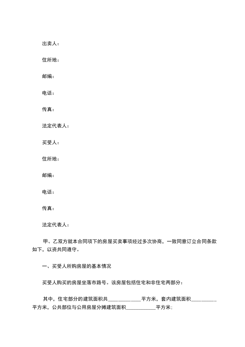 经充分协商,甲乙双方现就房屋买卖事宜订条约如下: