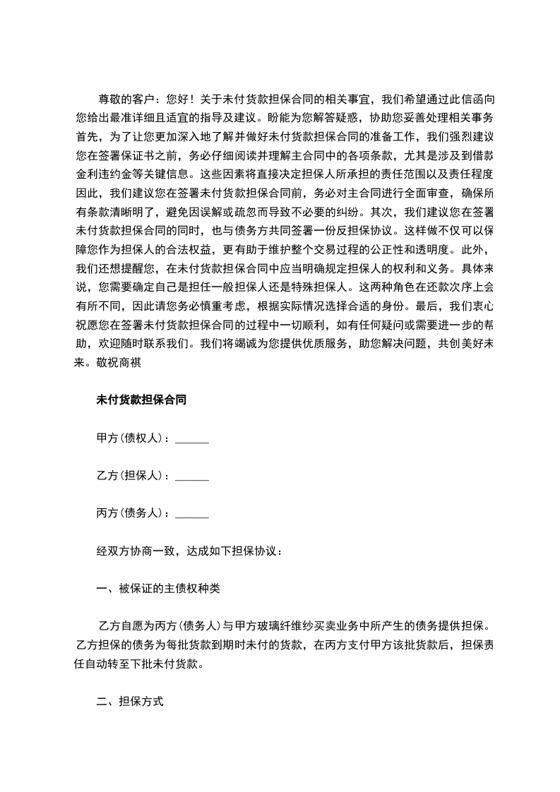 鉴于甲方与债务人(以下简称“债务人”)之间存在货款往来,为保障甲方的债权得以实现,乙方自愿为债务人的上述货款提供担保。根据《中华人民共和国民法典》等相关法律法规的规定,甲乙双方经平等协商,自愿达成如下协议: