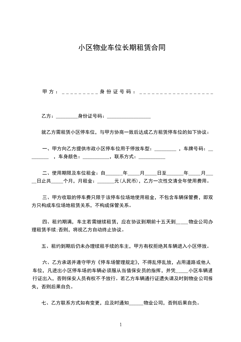 第四条、本停车位的使用1、乙方不得更改本停车位用途。乙方使用本停车位应当遵守本小区物业管理单位对本停车场的相关规定,该等规定乙方有义务自行了解。