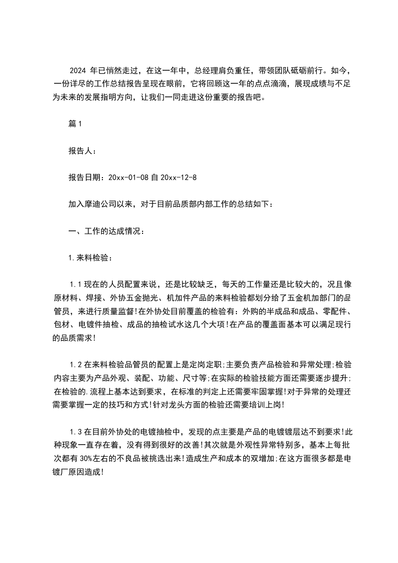 2024 年已悄然走过,在这一年中,总经理肩负重任,带领团队砥砺前行。如今,一份详尽的工作总结报告呈现在眼前,它将回顾这一年的点点滴滴,展现成绩与不足,为未来的发展指明方向,让我们一同走进这份重要的报告吧。