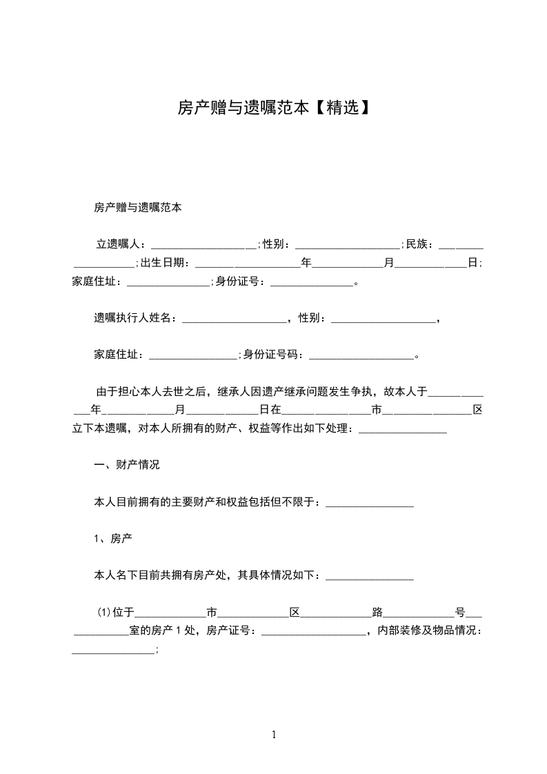 篇5《遗产赠与遗嘱范本》