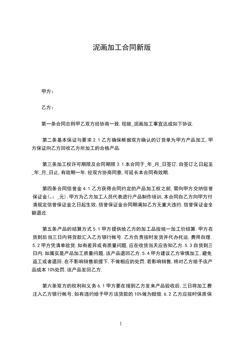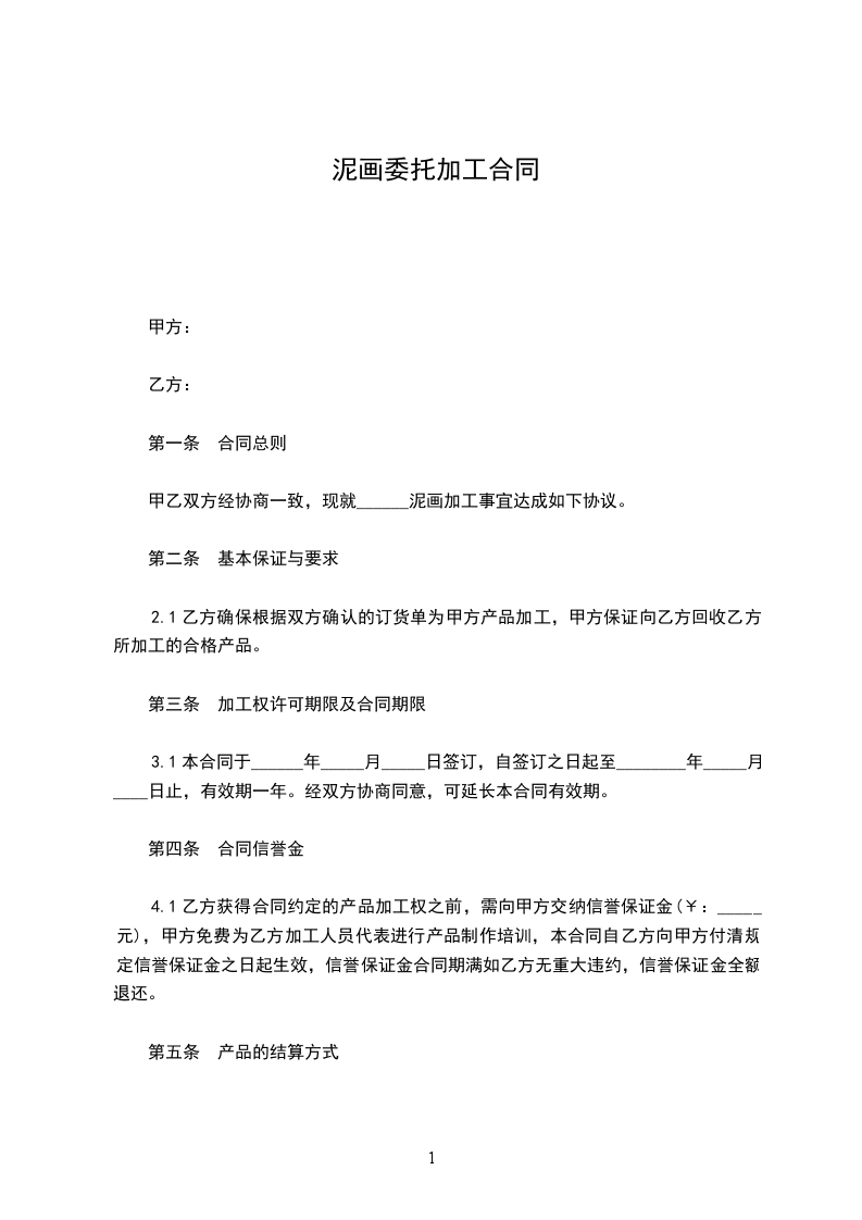 1.1 甲乙双方经协商一致,现就 泥画加工事宜达成如下协议。
