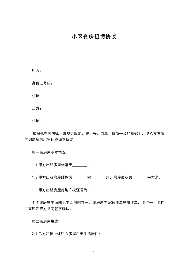 2.1乙方租赁上述甲方房屋用于生活居住;