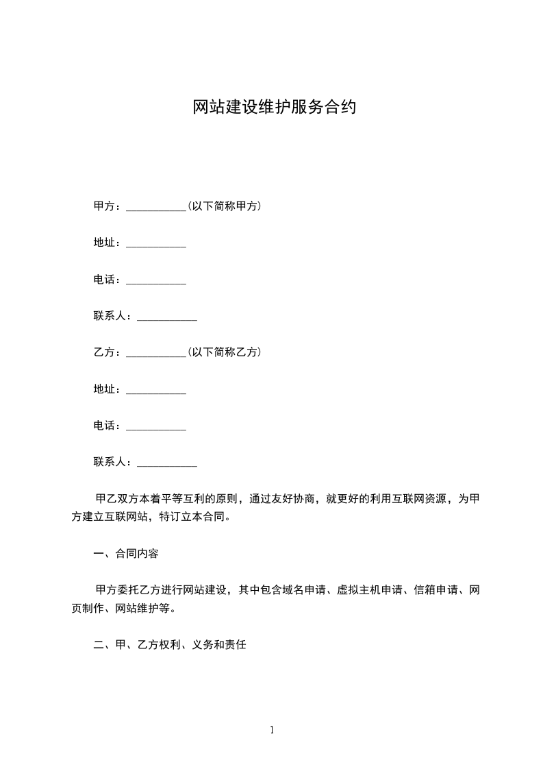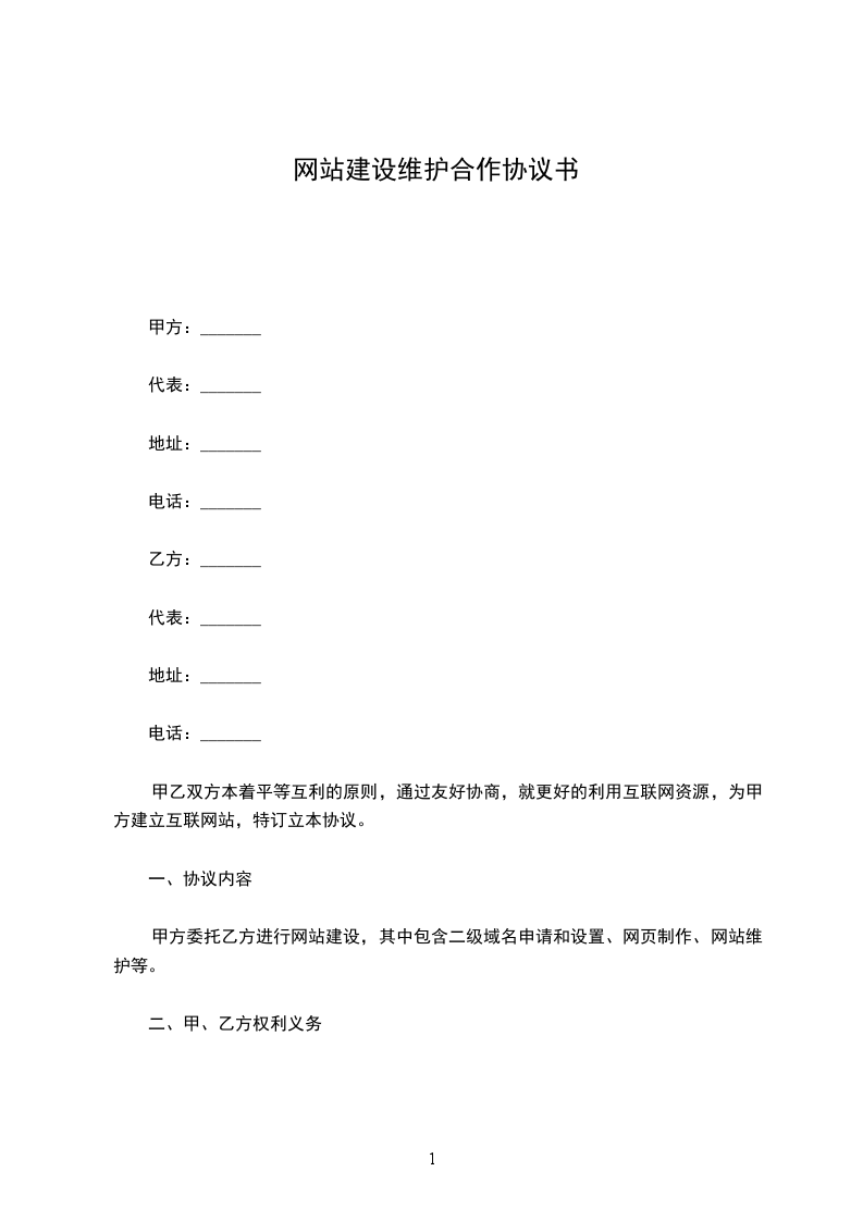 现经甲乙双方友好协商,根据现行法律法规对合同、知识产权及网络管理的有关规定,就甲方的_____er_____网站建设与维护事宜达成以下协议: