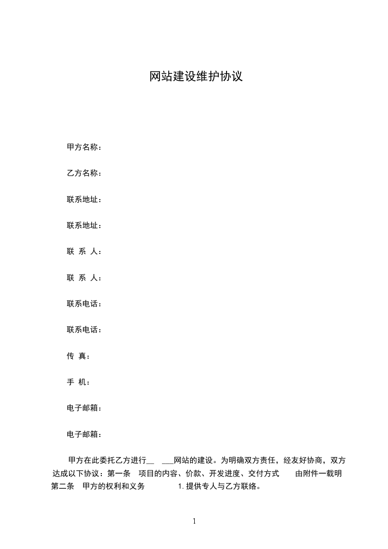 6、本合同结束时,在相同合同条件下,乙方有为甲方提供互联网站维护服务的优先权。