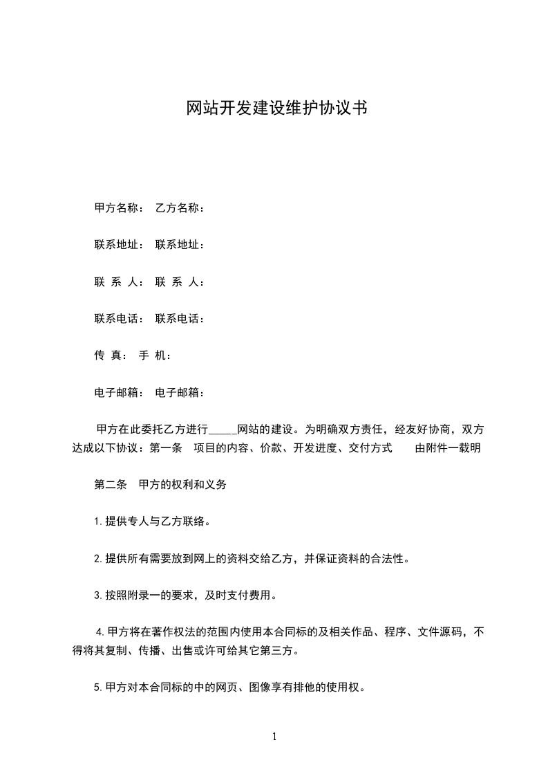 5、本合同结束时,乙方应向甲方移交网站管理、维护、更新的文字说明、网站密码;