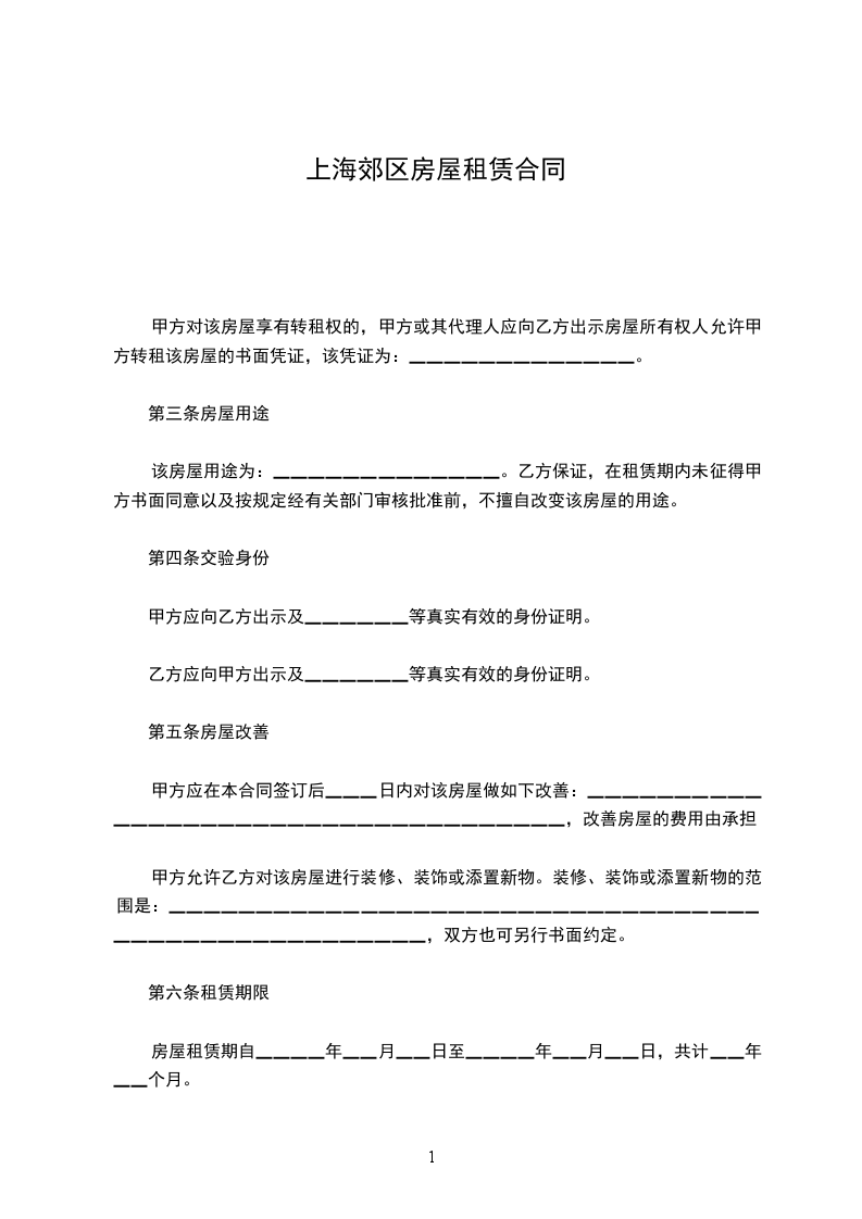 第六条租赁期限