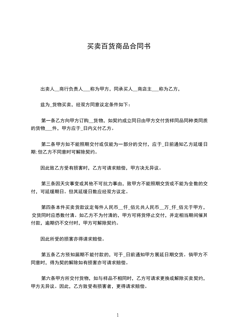 1.甲、乙双方所签订的具体合同要求,一方未能履行或未能完全履行合同时,应向对方支付违约合同货款总值1%的违约金。但如双方协商办理变更或解除合同手续的,不按违约处理。