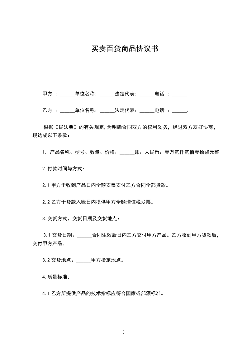 第一条经甲乙双方协商交易活动,必须履行本合同条款。具体品类,需签订要货成交单,并作为本购销合同的附件;本合同中的未尽事宜经双方协商需补充的条款可另附协议书,亦视为合同附件。合同附件与本合同具有同等效力。