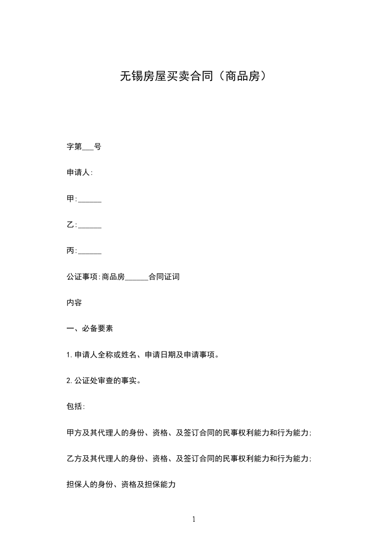 公证事项:商品房______合同证词