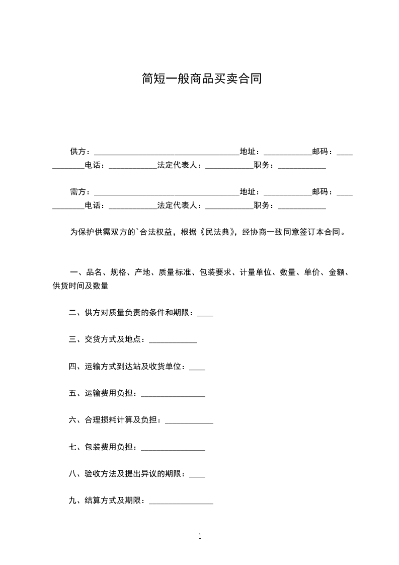 需方:____________________________________地址:____________邮码:____________电话:____________法定代表人:____________职务:____________