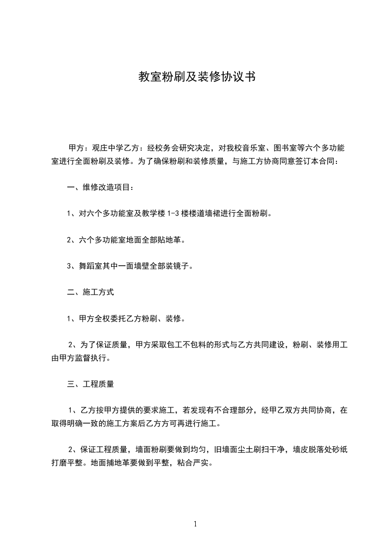 经甲乙方多次协商,双方本着互利的原则,就甲方在市石油公司后院新华印刷厂南侧的小二层半房屋内墙承包乙方粉刷,现将粉刷有关事宜协商如下: