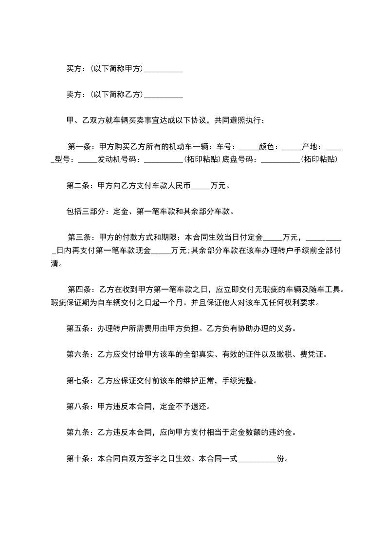 二、车辆卖价人民币_____元整,终身卖给乙方所有。