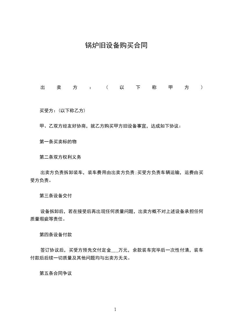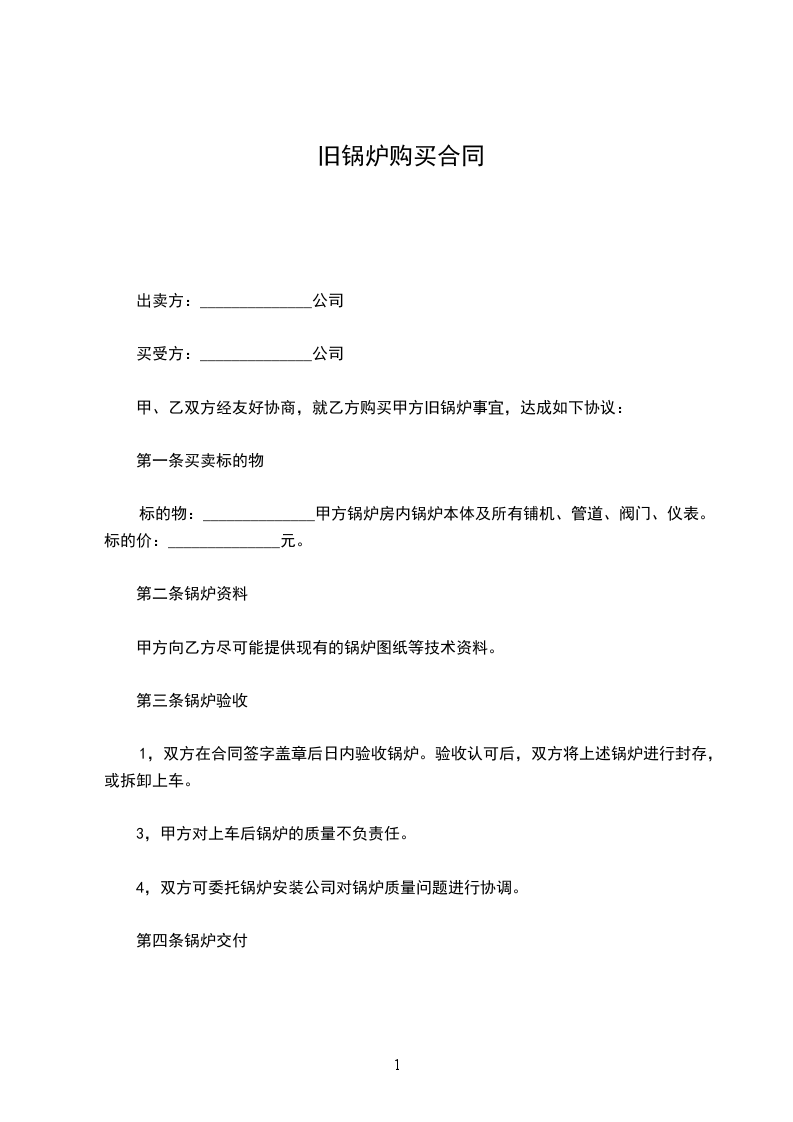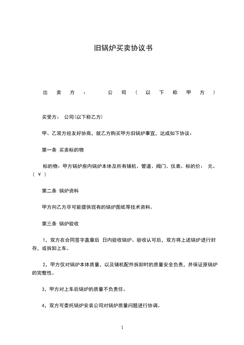 甲、乙双方经友好协商,就乙方购买甲方旧锅炉事宜,达成如下协议: