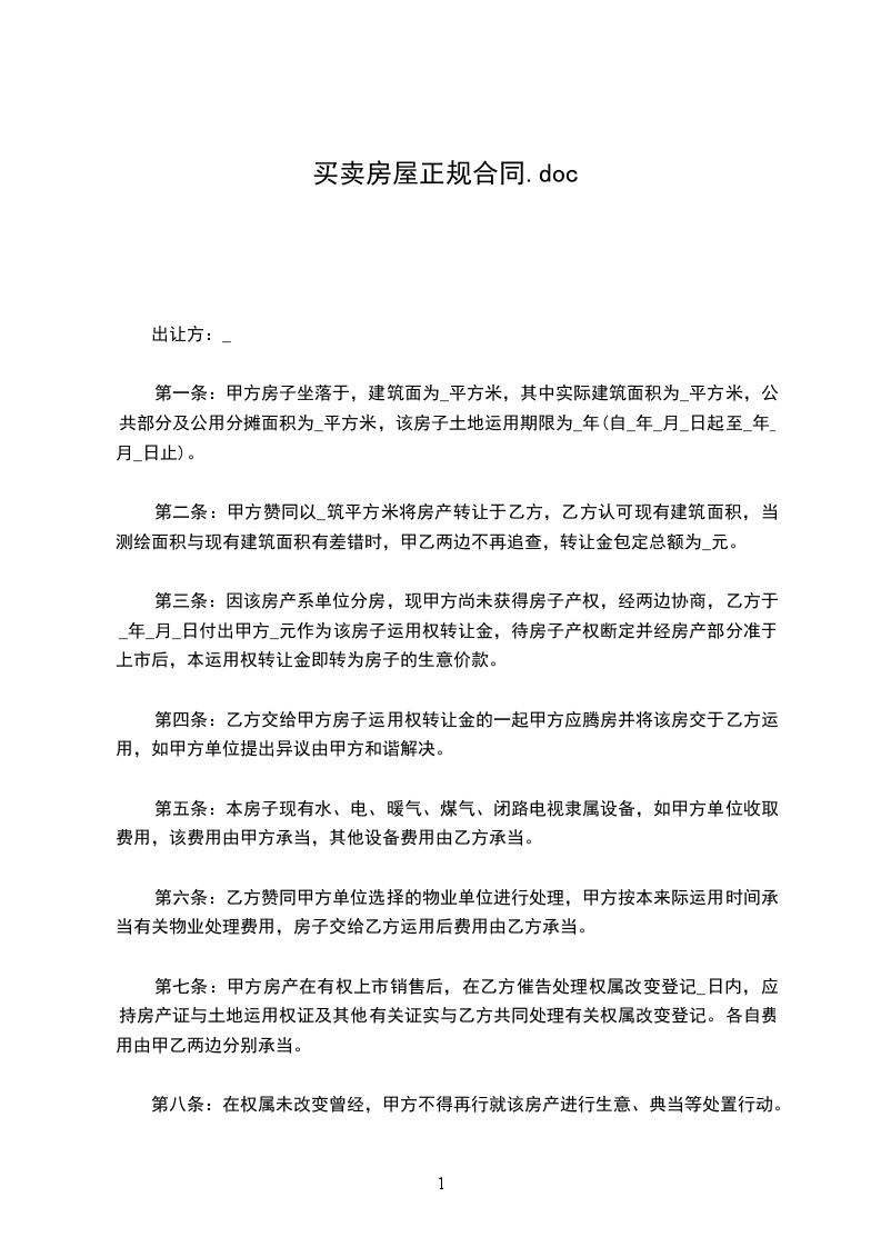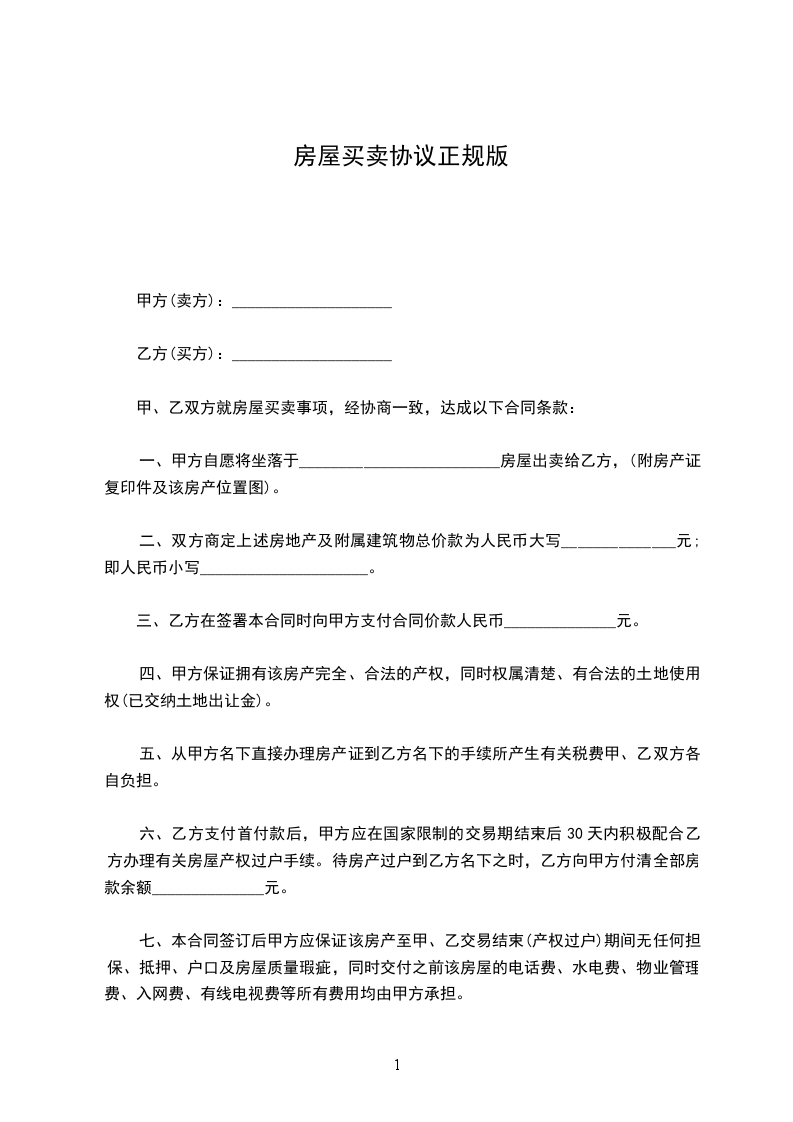 篇1《房屋买卖合同》