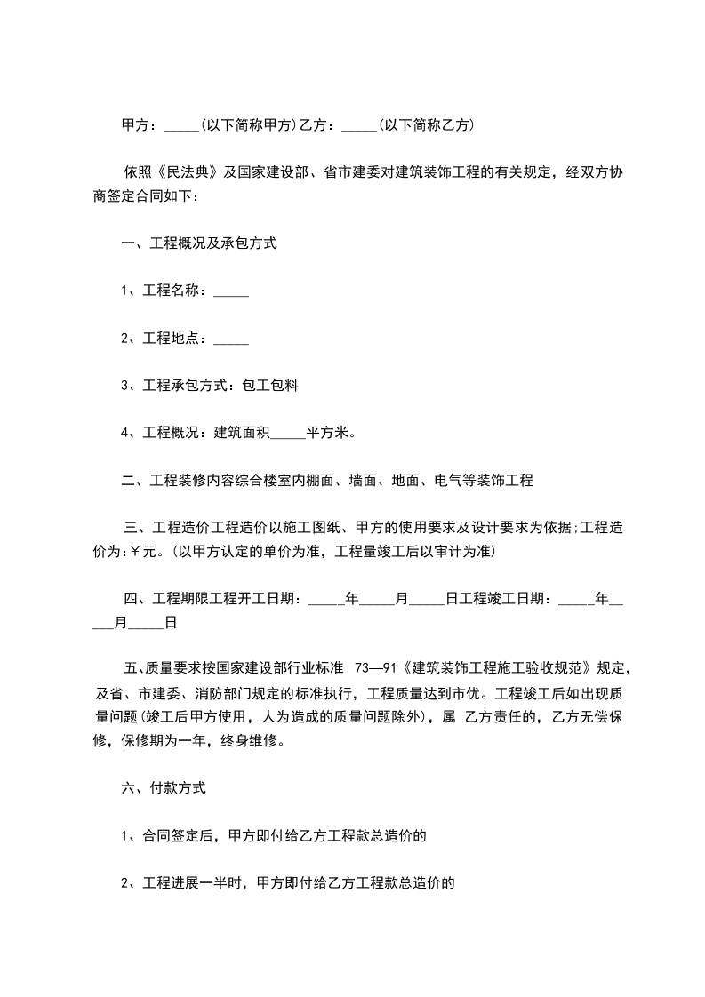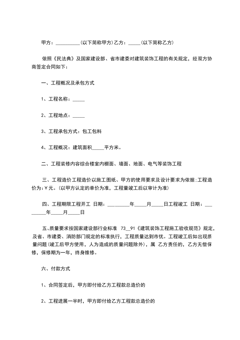 2、工程进展一半时,甲方即付给乙方工程款总造价的
