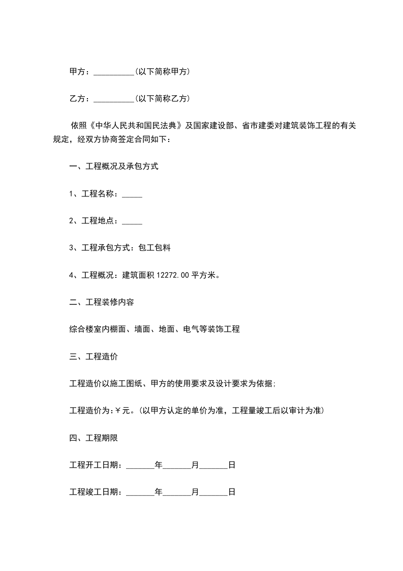 3、工程承包方式:包工包料