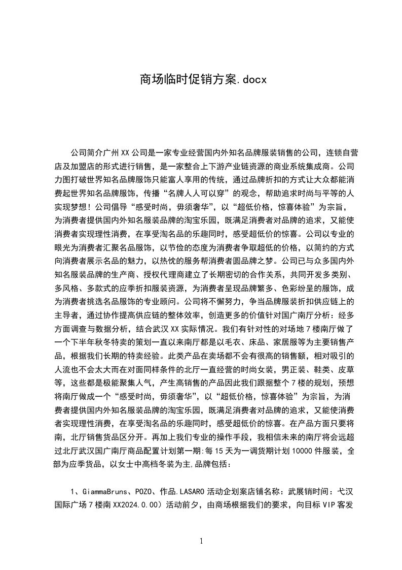 因公司业务所需,甲方同意安排乙方在超市促销岗位工作。本协议有效期为两个月,于 20xx年9月1日生效,至20xx年10月31日终止。