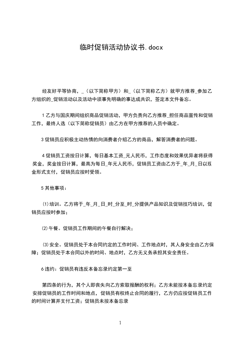 临时促销员劳务合同,是用于规范临时促销员与用人单位之间权利和义务的重要文件。它明确了工作内容、工作时间、薪酬待遇等方面的条款,为双方提供了明确的行为准则和保障,确保临时促销员在工作期间的合法权益得到充分维护。
