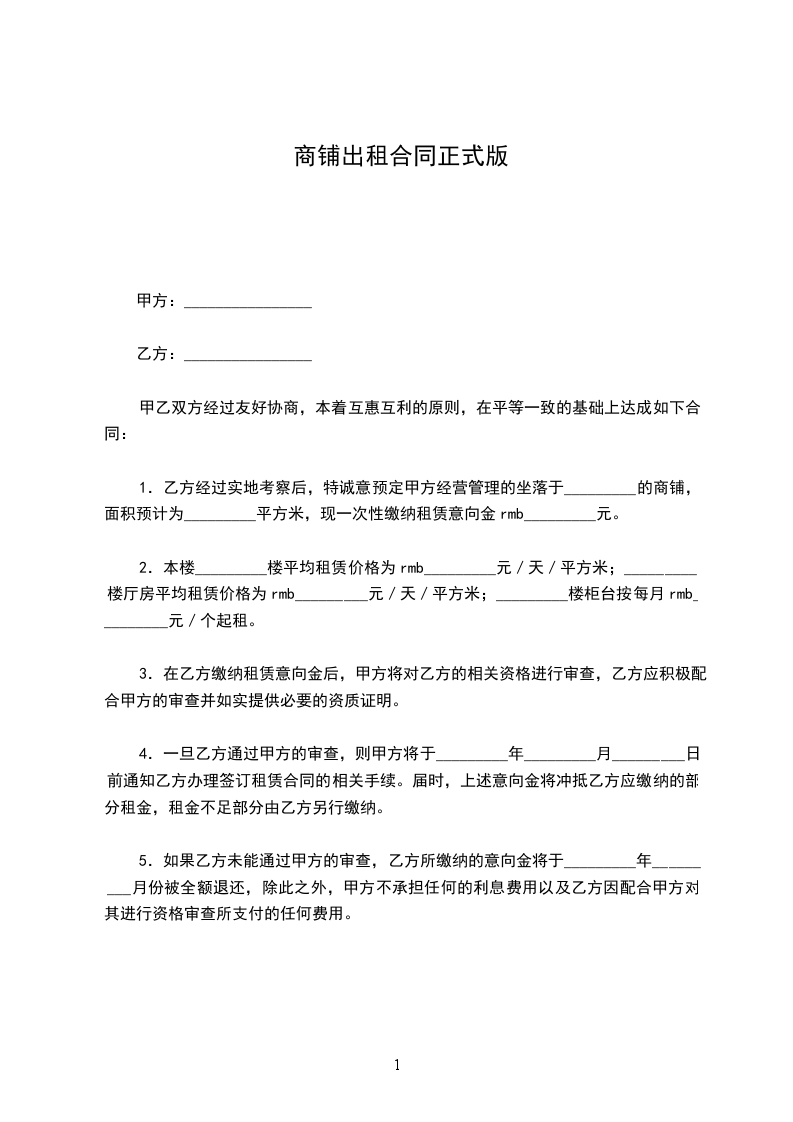 1. 甲方将位于____________________(具体地址)的商铺出租给乙方使用。