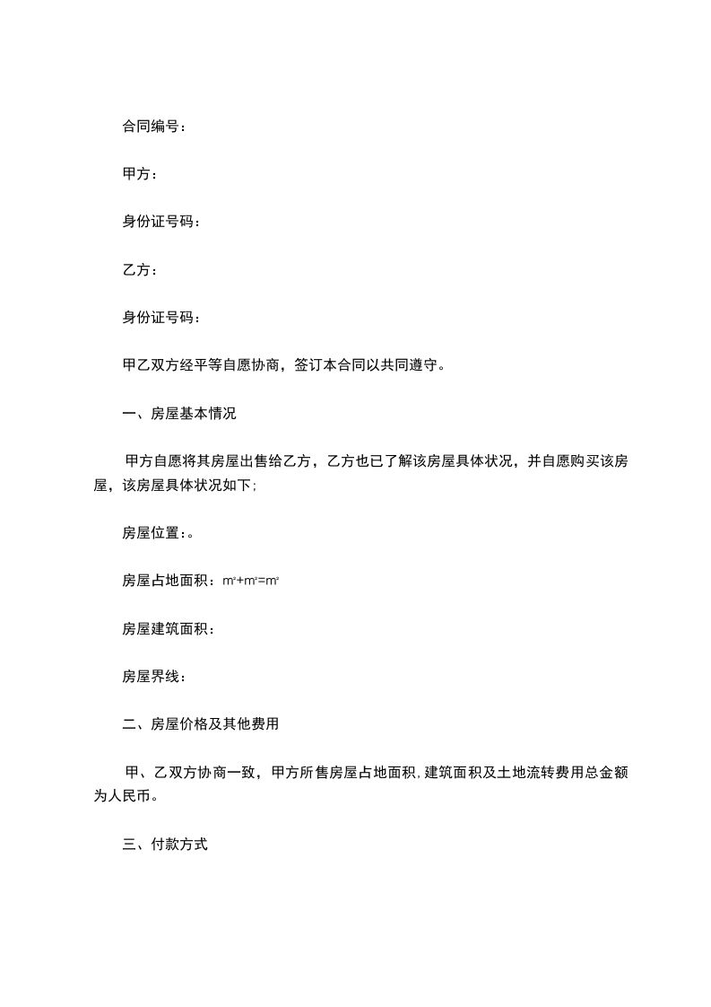 甲、乙双方协商一致,甲方所售房屋占地面积,建筑面积及土地流转费用总金额为人民币。