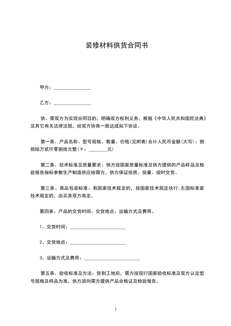 1.乙方送货的材料乙方须在收到甲方订单____日内将货物送至甲方指定的地点,