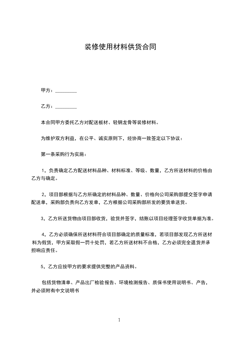 本合同甲方委托乙方对配送板材、轻钢龙骨等装修材料。为维护双方利益,在公平、诚实原则下,经协商一致签定以下协议: