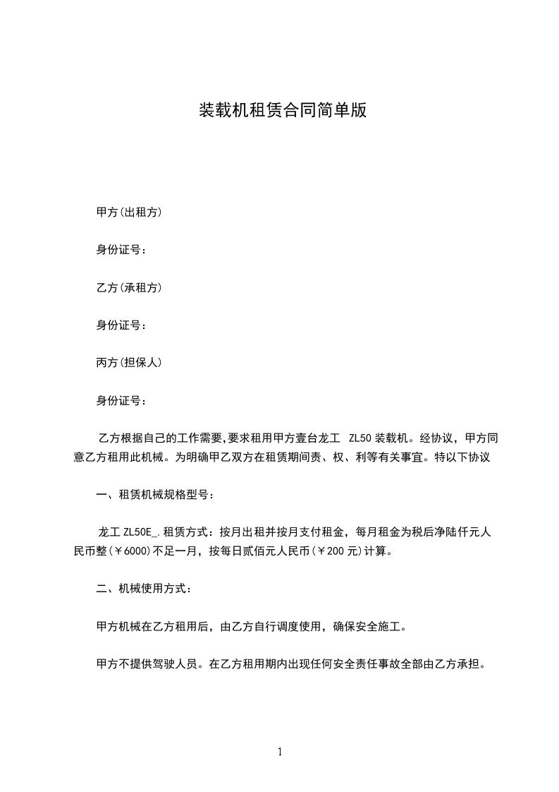 乙方根据自己的工作需要,要求租用甲方壹台装载机。经协议,甲方同意乙方租用此机械。为明确甲乙双方在租赁期间责、权、利等有关事宜。特以下协议: