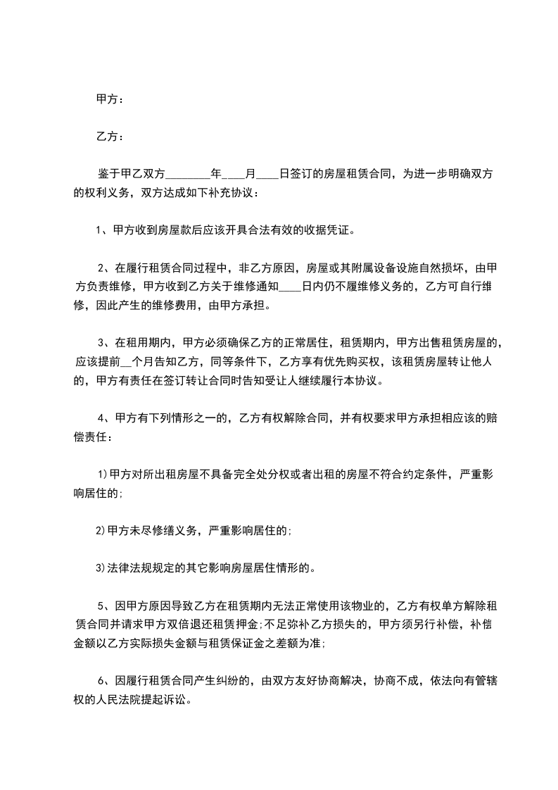 鉴于甲乙双方________年____月____日签订的房屋租赁合同,为进一步明确双方的权利义务,双方达成如下补充协议: