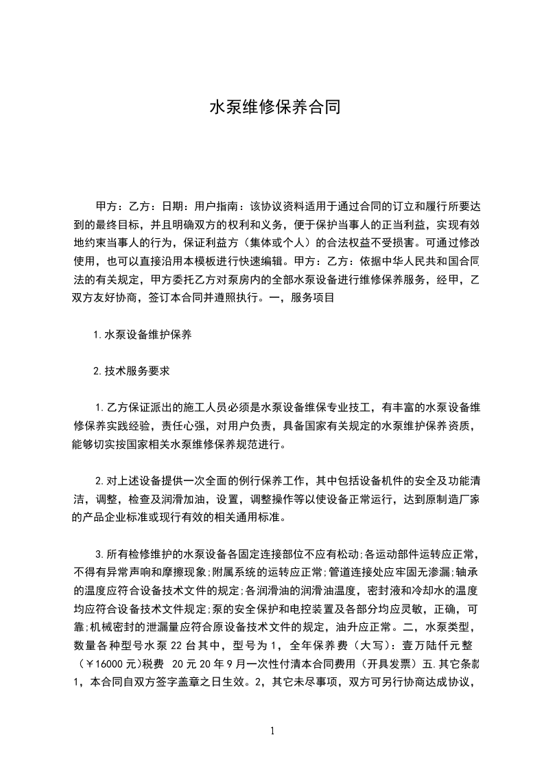你是否在寻找各类水泵维修合同的汇编呢?这些合同涵盖了各种水泵维修的相关条款与细节,从维修范围到费用结算,从维修期限到责任划分,应有尽有。它们能为你在水泵维修事务中提供清晰的指引和保障,让维修过程更加顺利。
