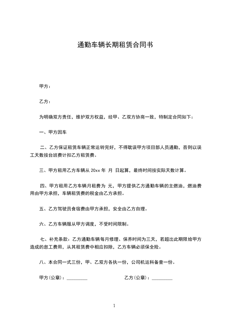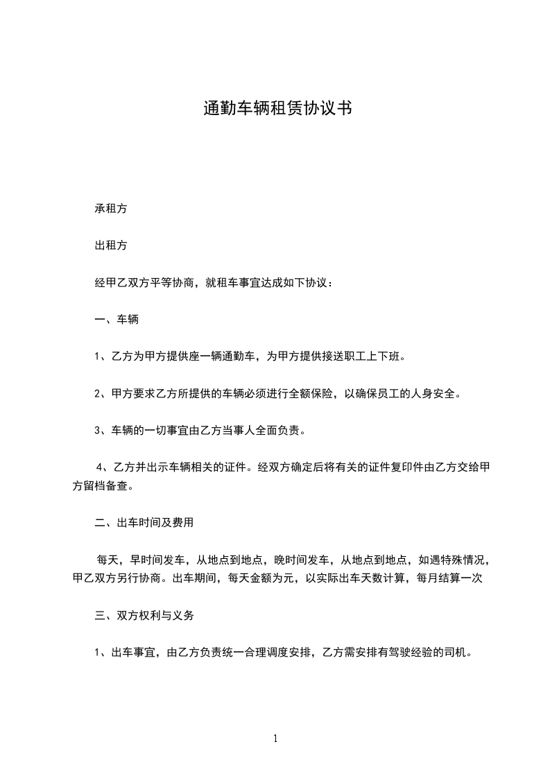 1、乙方为甲方提供座一辆通勤车,为甲方提供接送职工上下班。