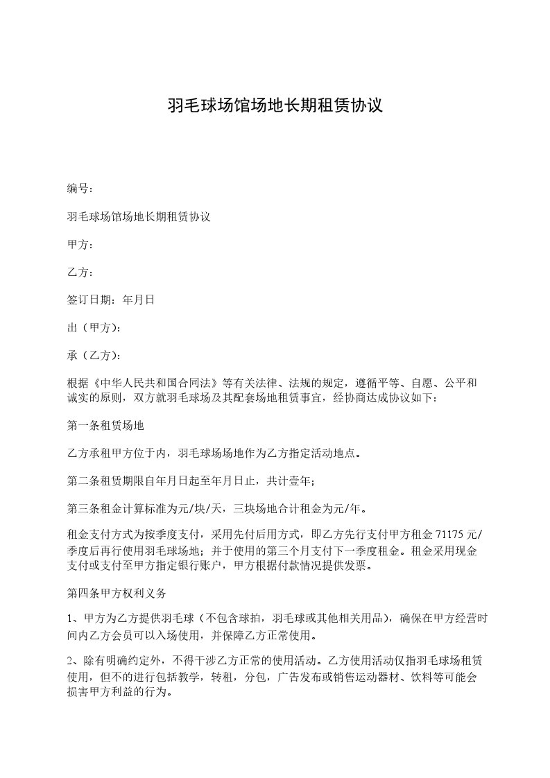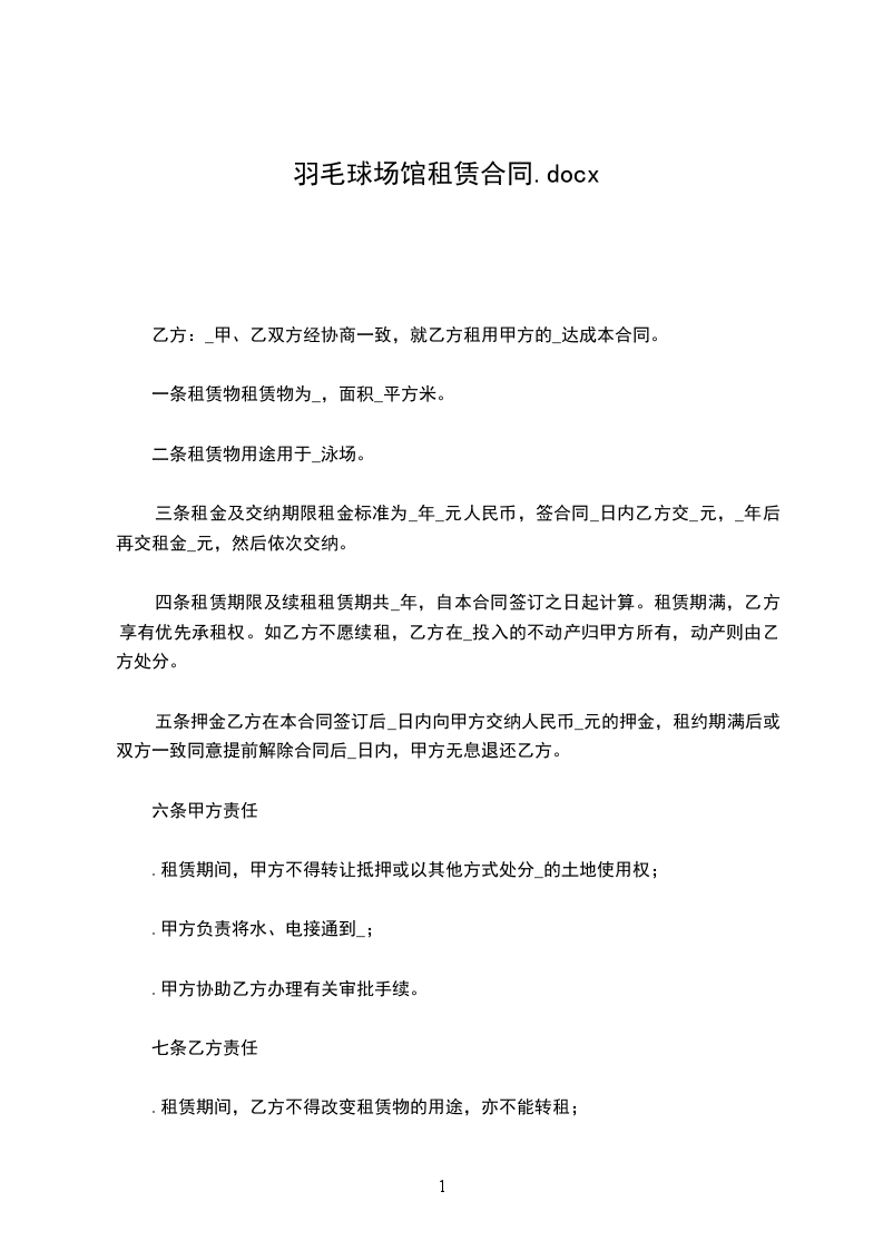 第二条租赁物用途用于________________泳场。