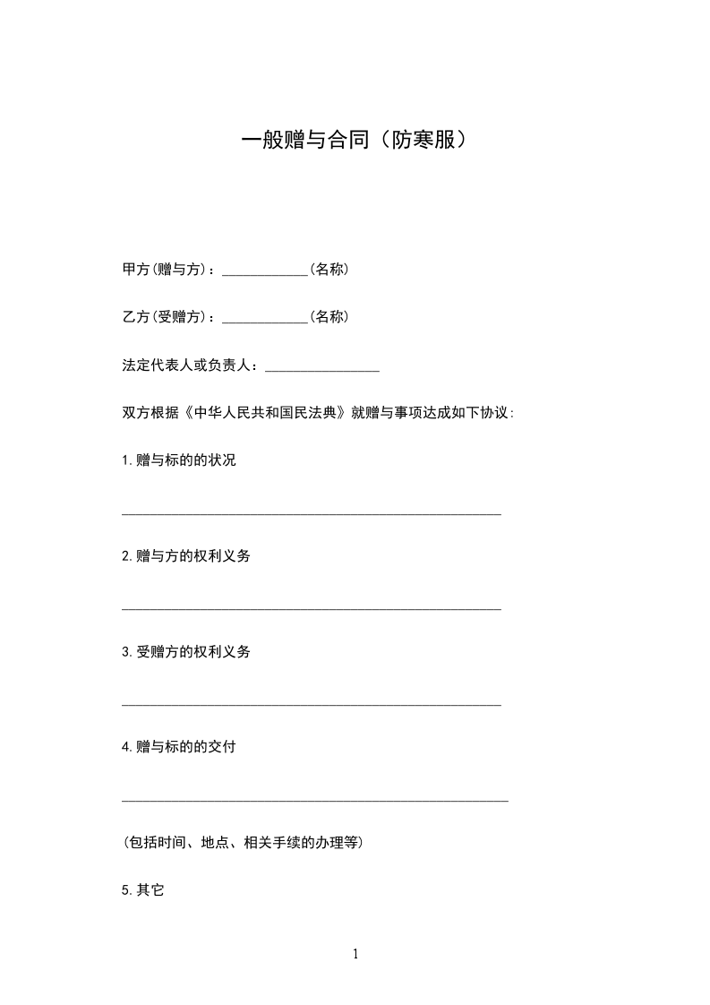 甲方(赠与人):_________(写明姓名、住址) 乙方(受赠人):_________(写明姓名、住址) 甲乙双方就赠送_________(写明赠与标的物)事宜达成协议如下: