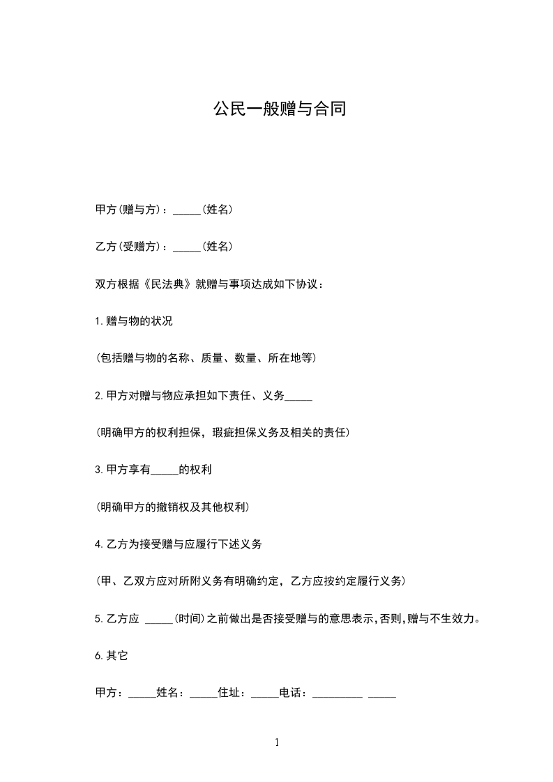 受赠人___________(以下简称乙方)