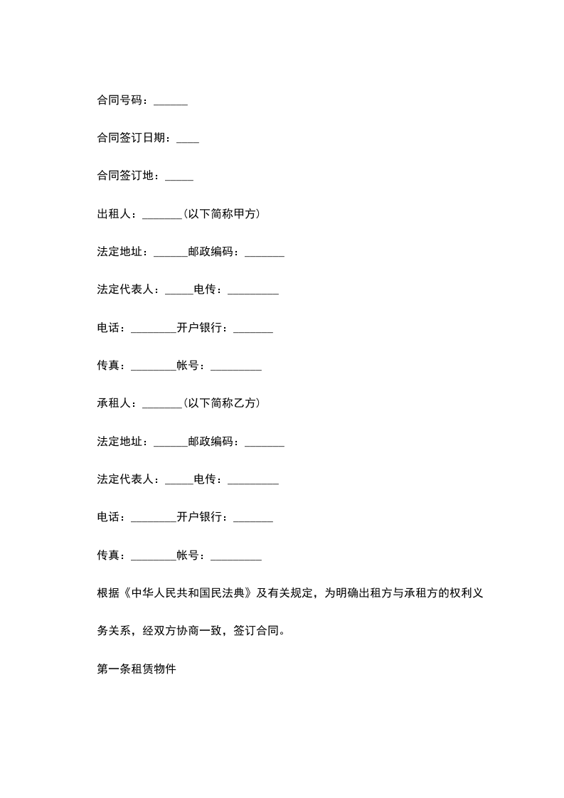 承租方地址:___电话:___传真:___银行账户号:__