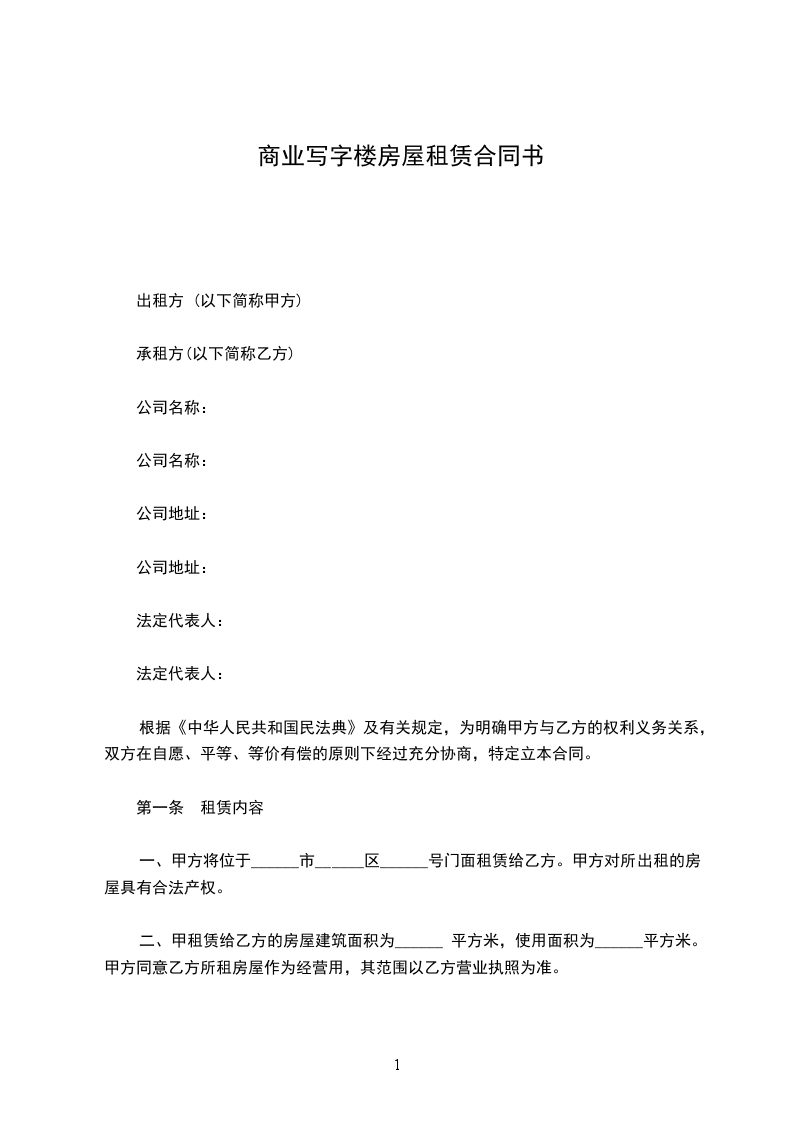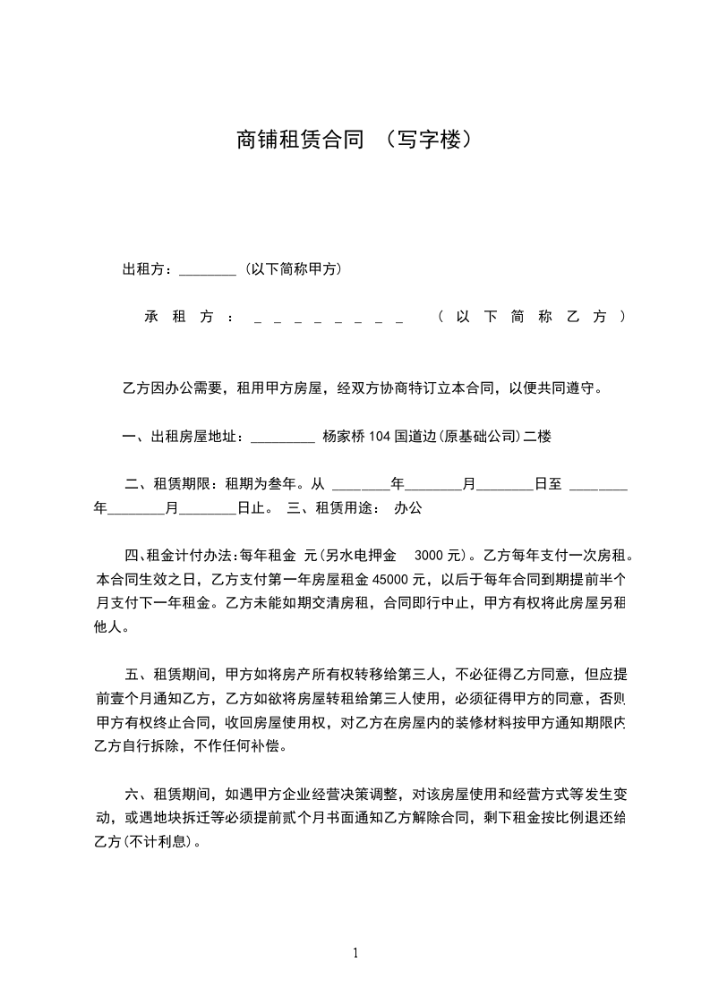 1.租期为_______年_________月________日至_________年__________月_________日。