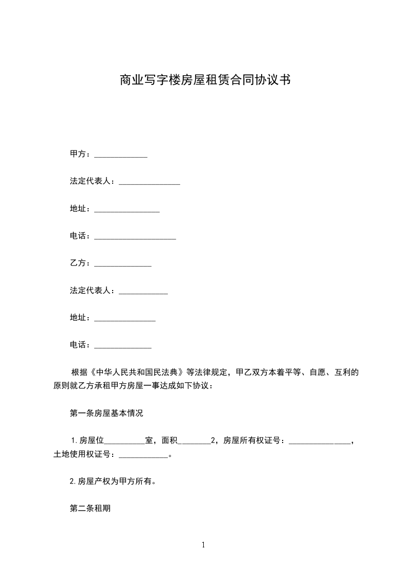 写字楼房屋租赁合同范本二