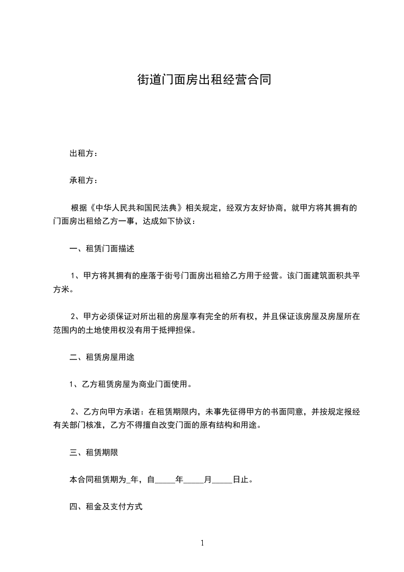 街道门面出租协议,是房东与租客之间关于街道门面租赁事宜的书面约定。它明确了租赁期限、租金金额及支付方式、门面维护责任等重要条款,为双方的租赁行为提供了法律保障,确保租赁过程的顺利进行,避免可能出现的纠纷。