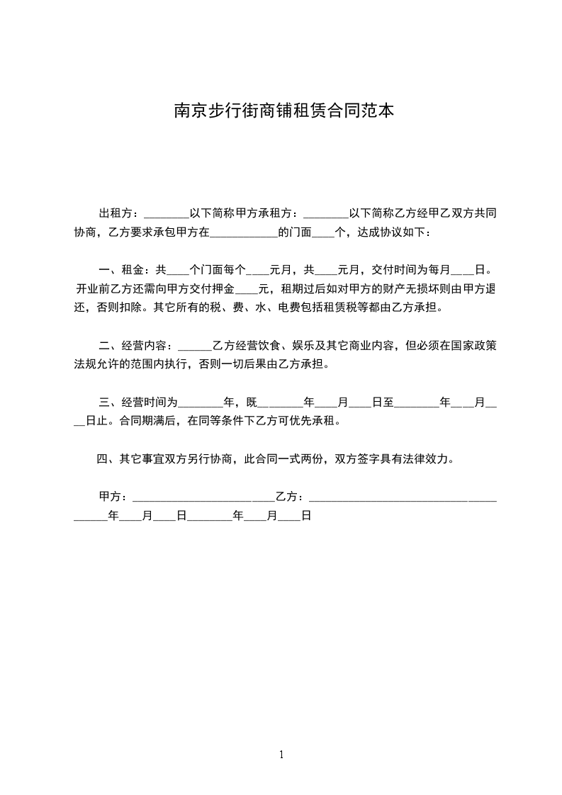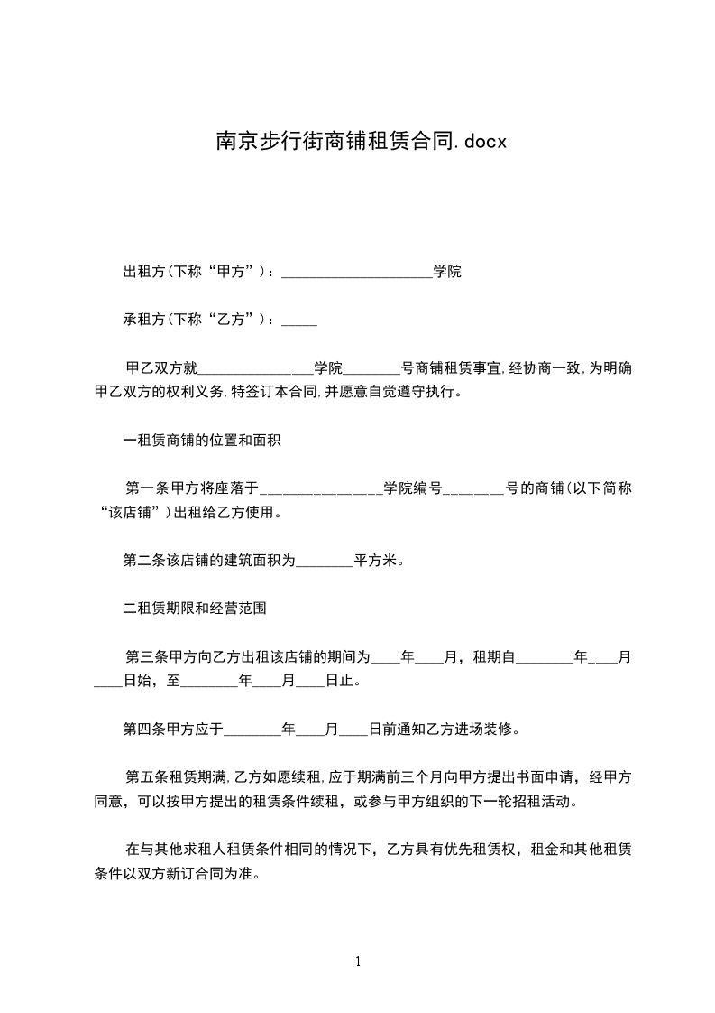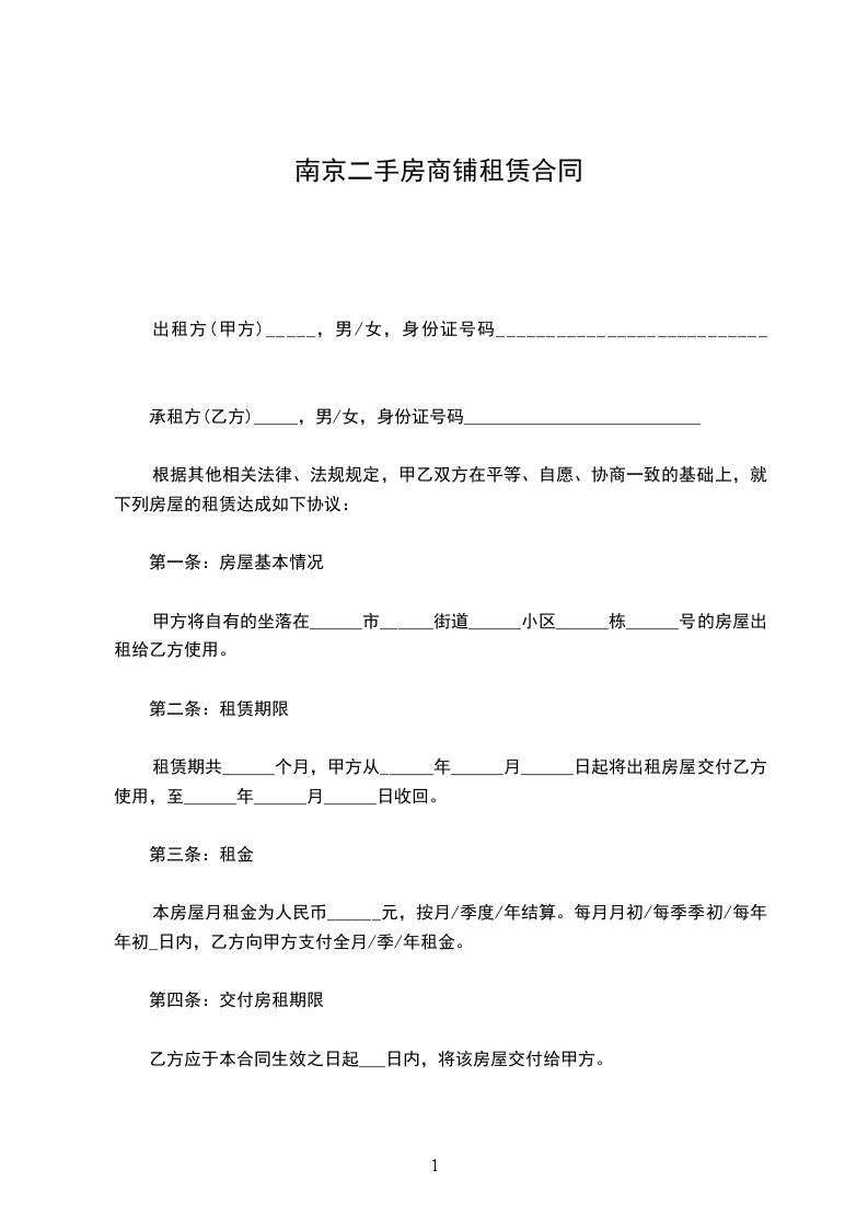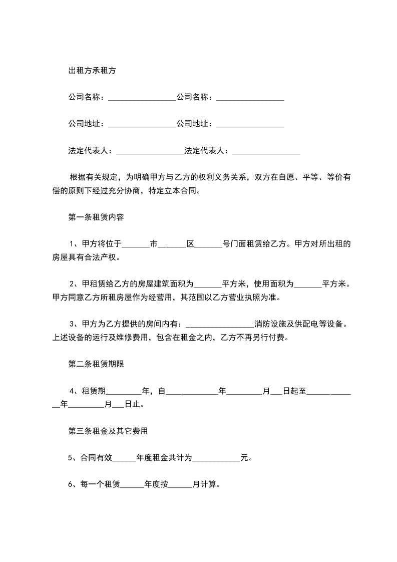 1、甲方将位于_______市_______区_______号门面租赁给乙方。甲方对所出租的房屋具有合法产权。