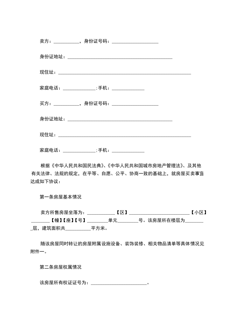 根据《中华人民共和国民法典》、《中华人民共和国城市房地产管理法》、及其他有关法律、法规的规定,在平等、自愿、公平、协商一致的基础上,就房屋买卖事宜达成如下协议: