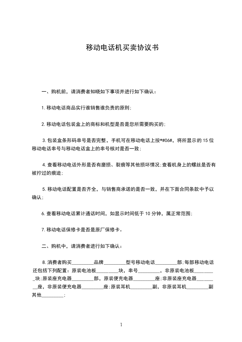 5.移动电话配置是否齐全,与销售商承诺的是否一致,并在下面合同条款中予以确认;