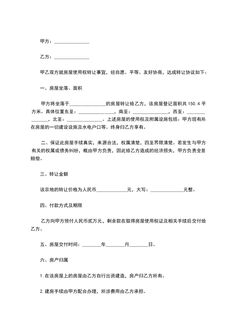 1. 该房屋转让价格为人民币______元(大写______元整)。