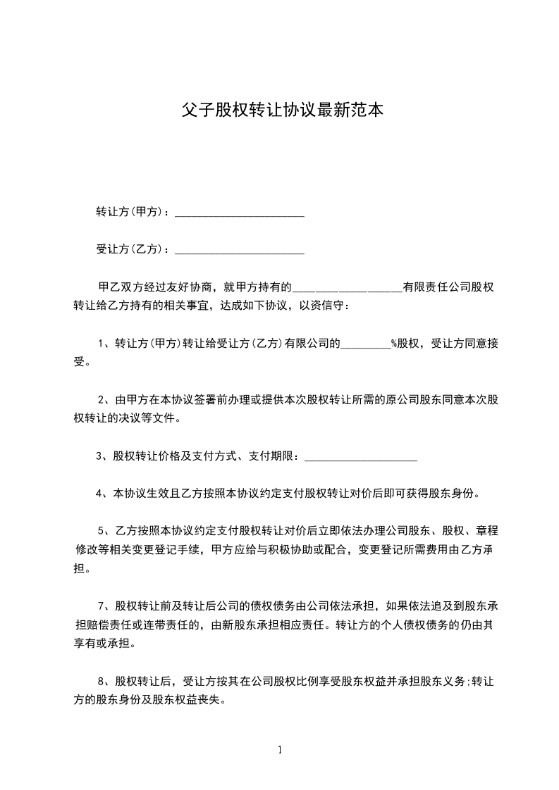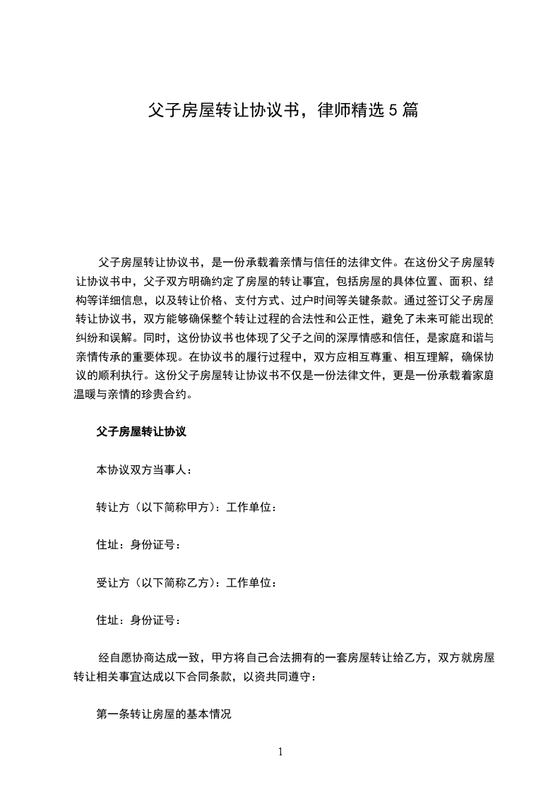 篇1《父子房屋转让合同协议书》