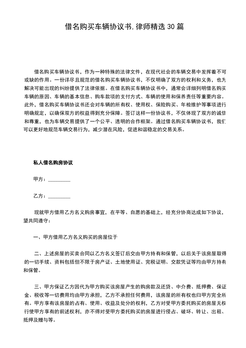 鉴于乙方希望通过甲方名义购买一辆车辆,双方经友好协商,达成以下协议: